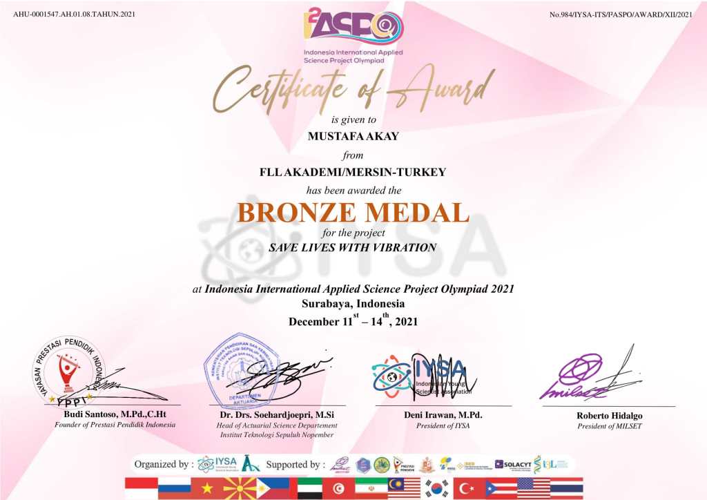 INDONESIA INTERNATIONAL APPLIED SCIENCE PROJECT OLYMPIAD 2021( I2ASPO ) SURABAYA, INDONESIA / DECEMBER 11-14,2021 / 380 PROJE 28 ÜLKE